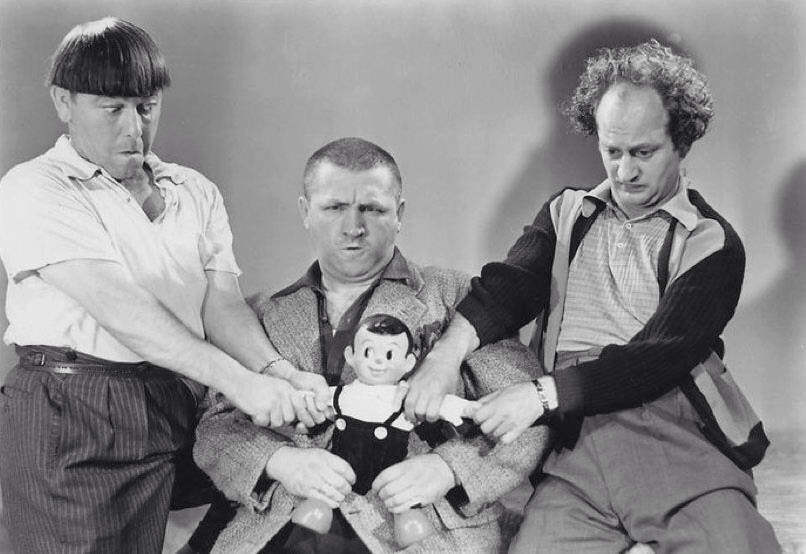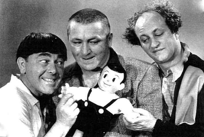 I own a copy of a photo of Scrappy with the Three Stooges which I like so much that I’ve posted it repeatedly. But I’ve never seen these additional two shots of Moe, Curly and Larry palling around with his Scrappiness, which were brought to my attention by Scrappyland reader Billie Towzer. Aren’t they fantastic?